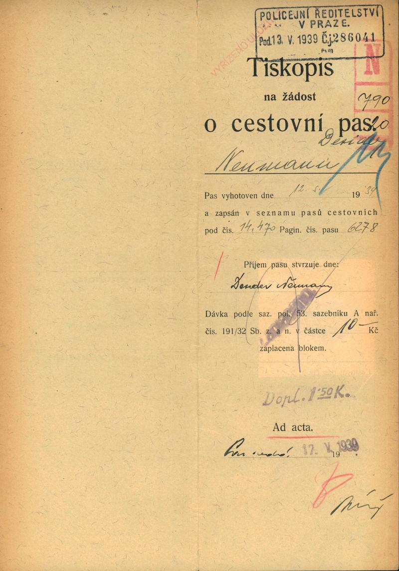 Neumann Desider: Žádost o vydání prozatímního cestovního pasu