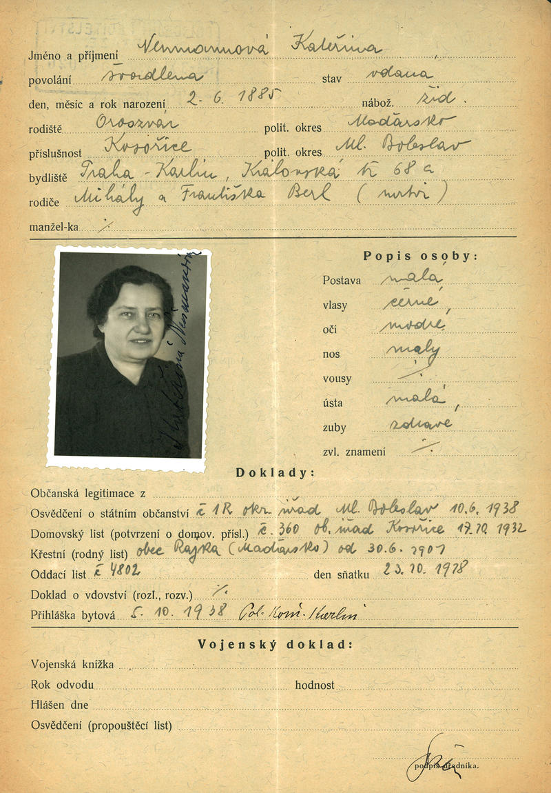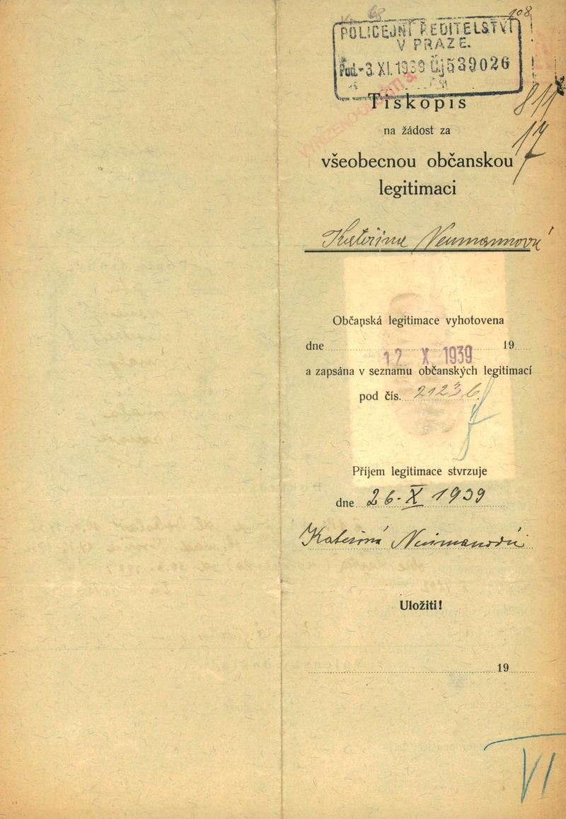 Neumannová Kateřina: Žádost o vydání občanské legitimace