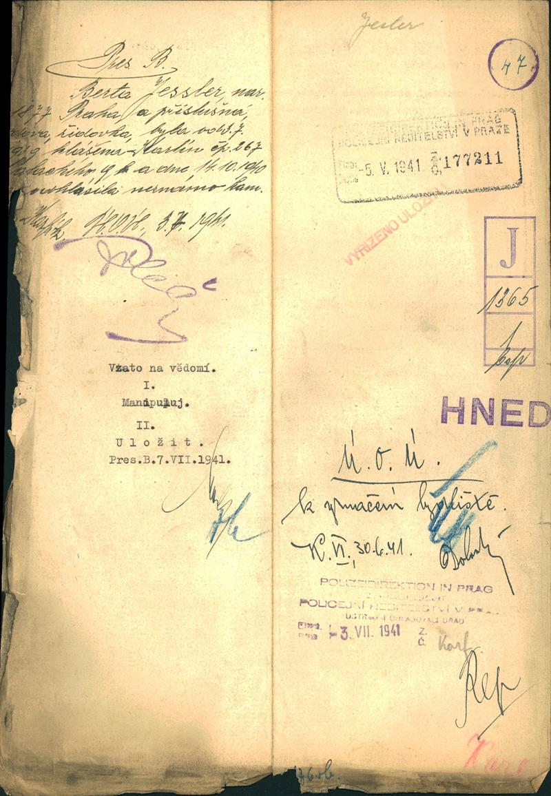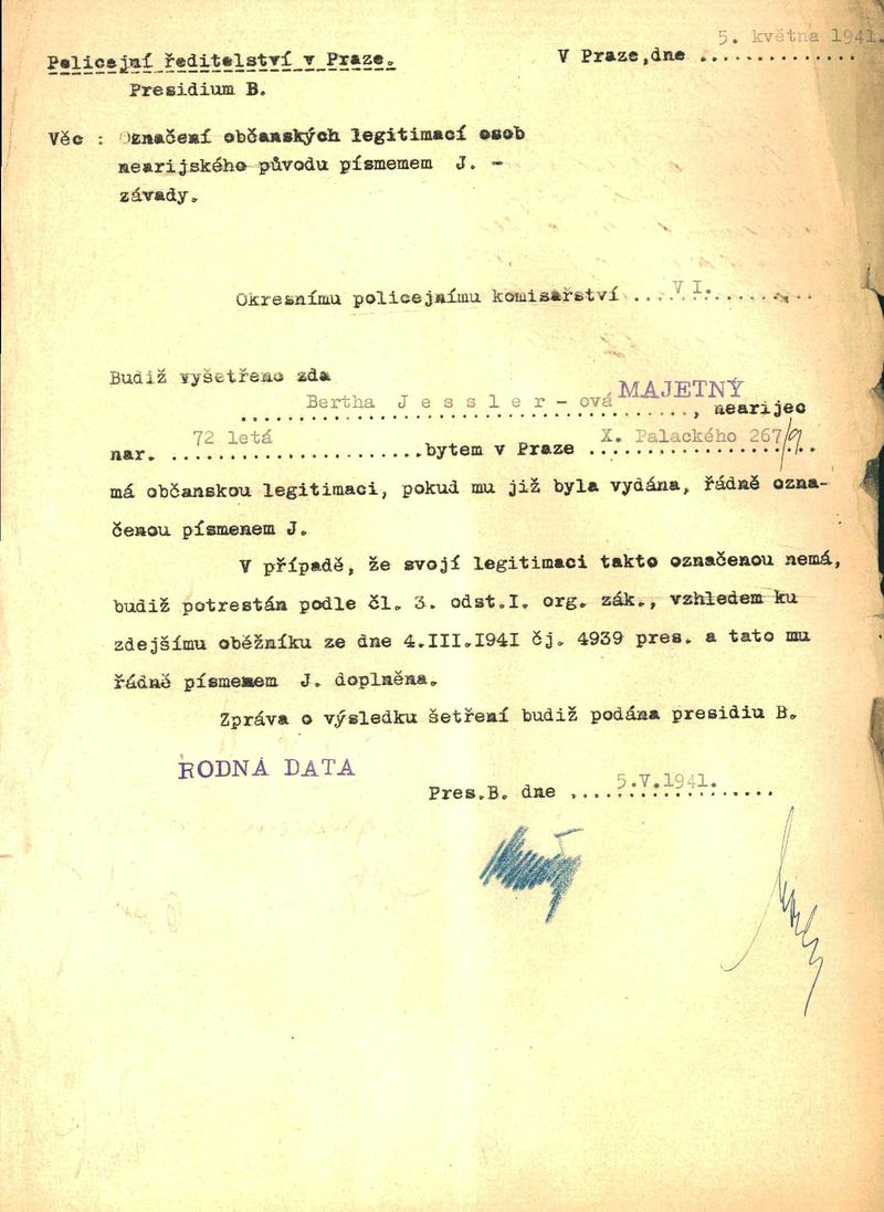 Jesslerová Berta: Označení občanských legitimací písmenem J