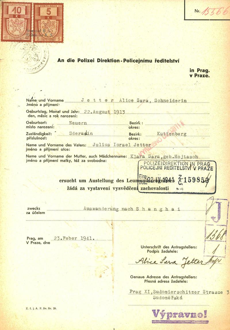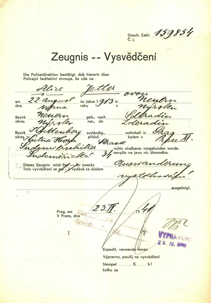 Jetterová Alice: Vysvědčení zachovalosti