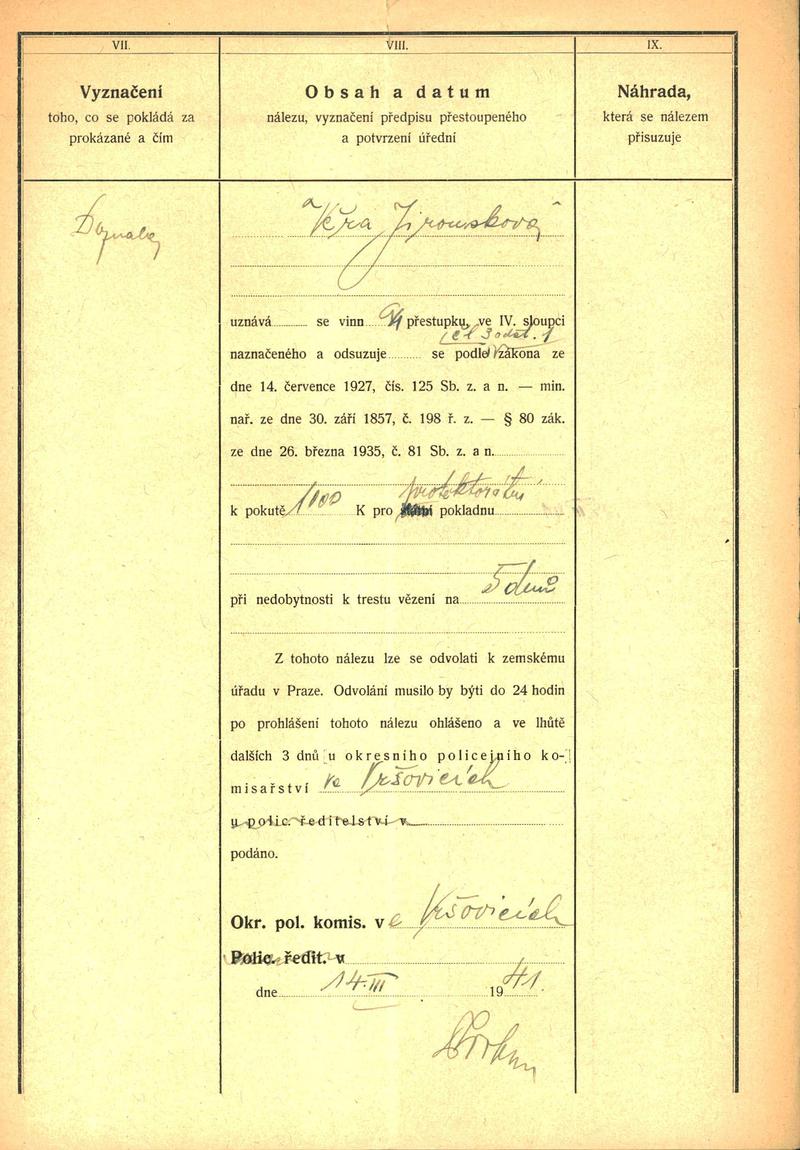 Národní archiv Praha > Policejní ředitelství v Praze > 1941-1950 > J > Jiroušková Věra