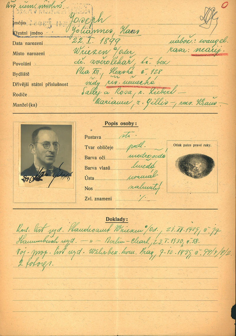 Joseph Johannes: Žádost o vydání občanské legitimace