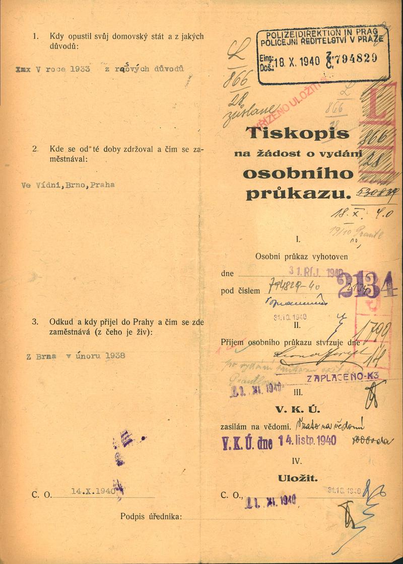 Joseph Leonor: Žádost o vydání občanské legitimace