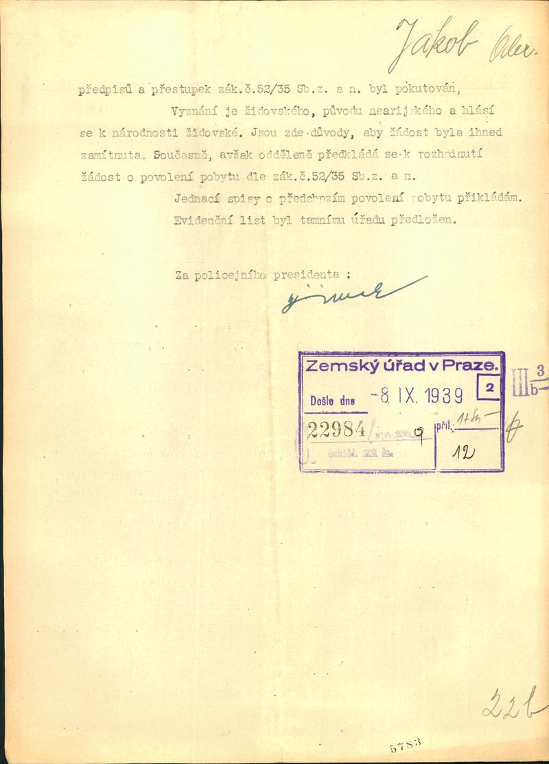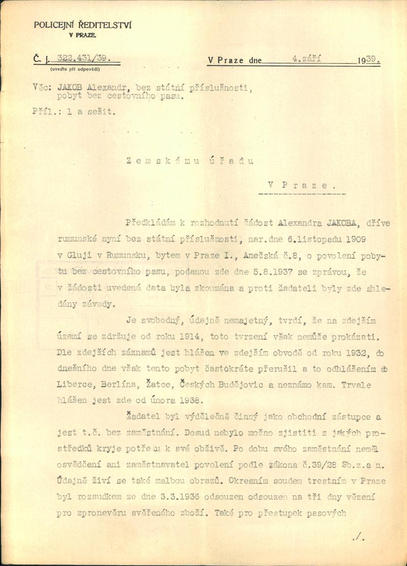 Jakob Alexandr: Vyjádření k žádosti o povolení pobytu