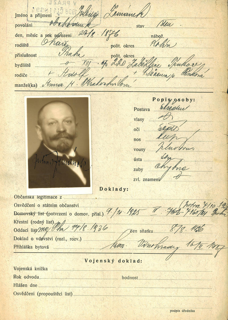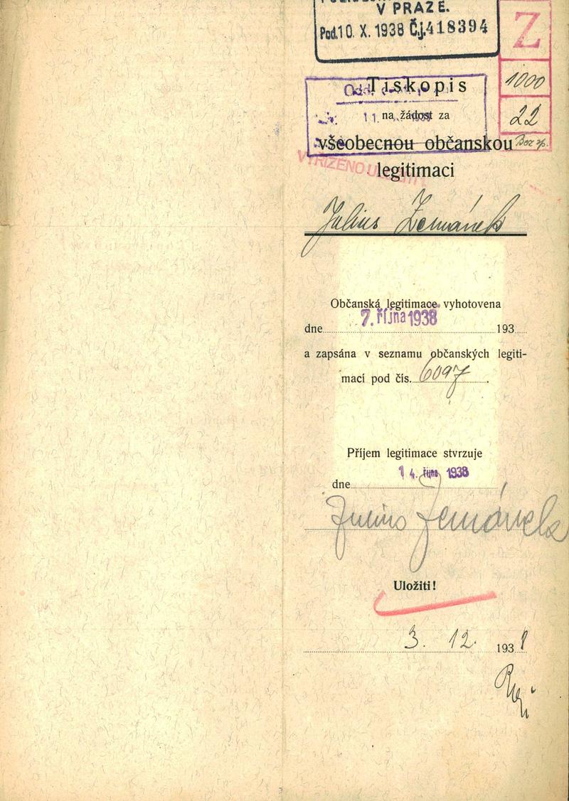 Zemánek Julius: Žádost o vydání občanské legitimace