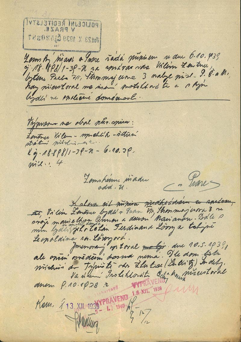 Zentner Vilém: Šetření o státní příslušnosti