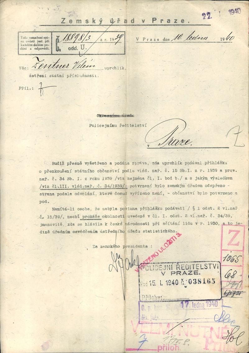 Národní archiv Praha > Policejní ředitelství v Praze > 1931-1940 > Z > Zentner Vilém