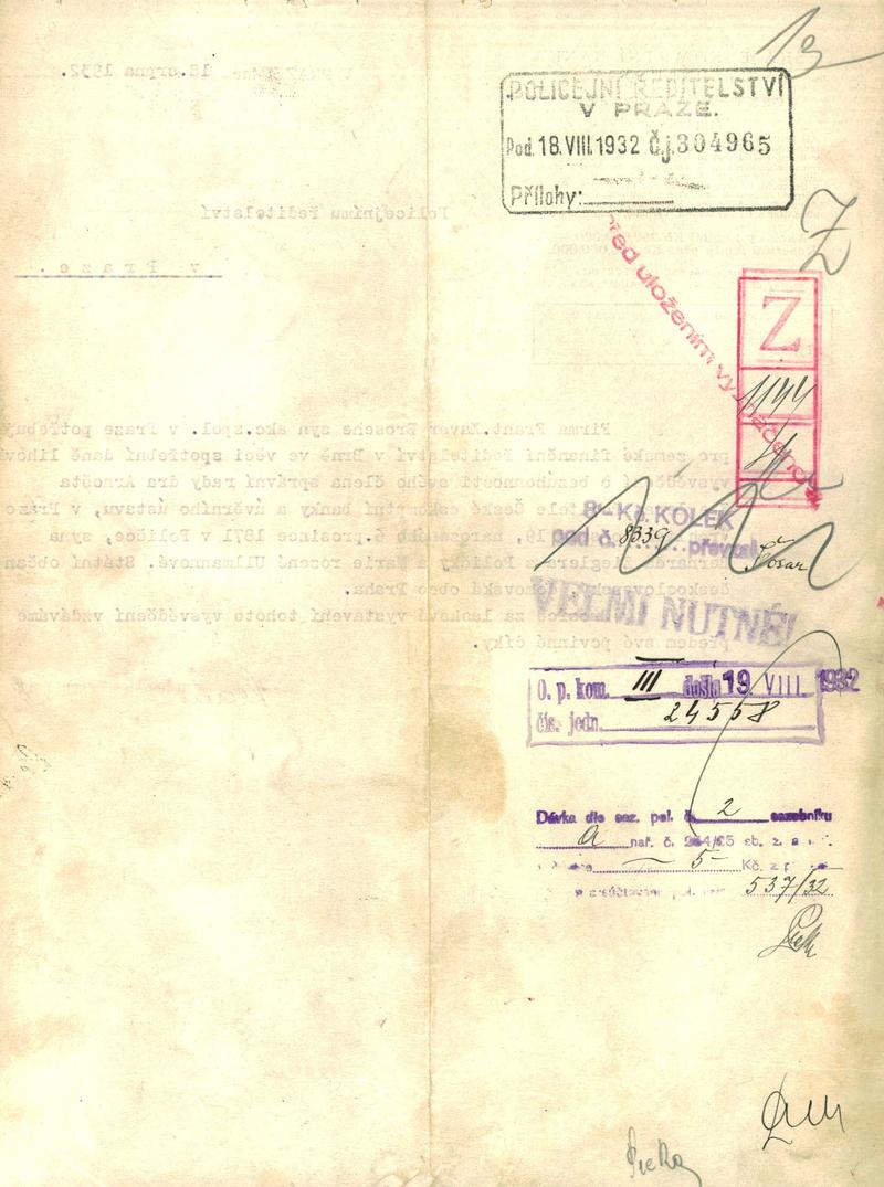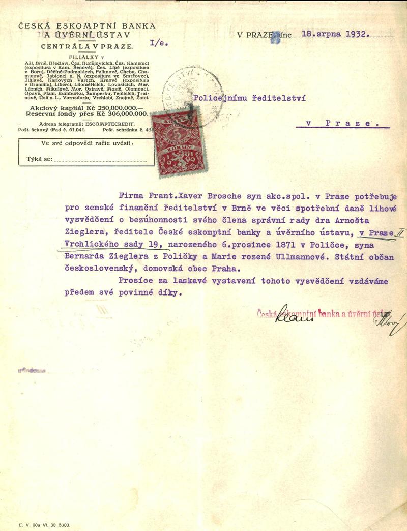 Ziegler Arnošt: Žádost o vystavení vysvědčení zachovalosti