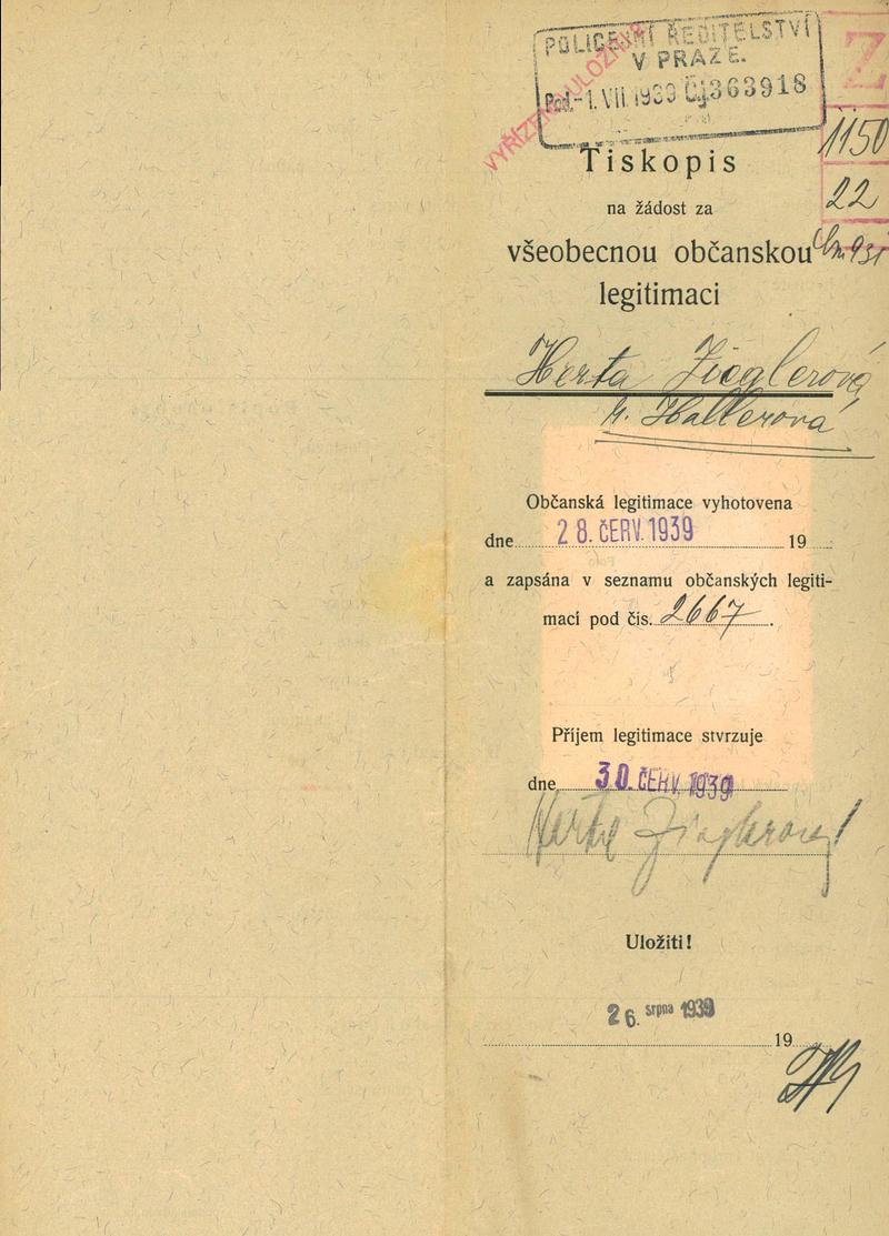 Zieglerová Herta: Žádost o vydání občanské legitimace