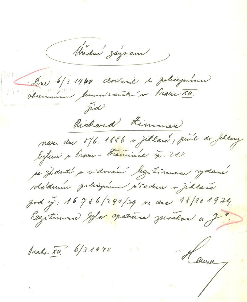 Zimmer Richard: Žádost o vidování občanské legitimace