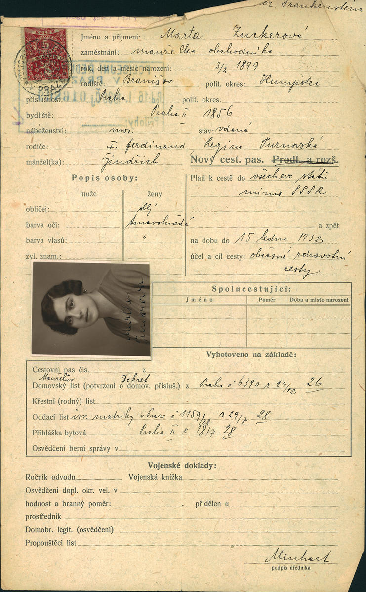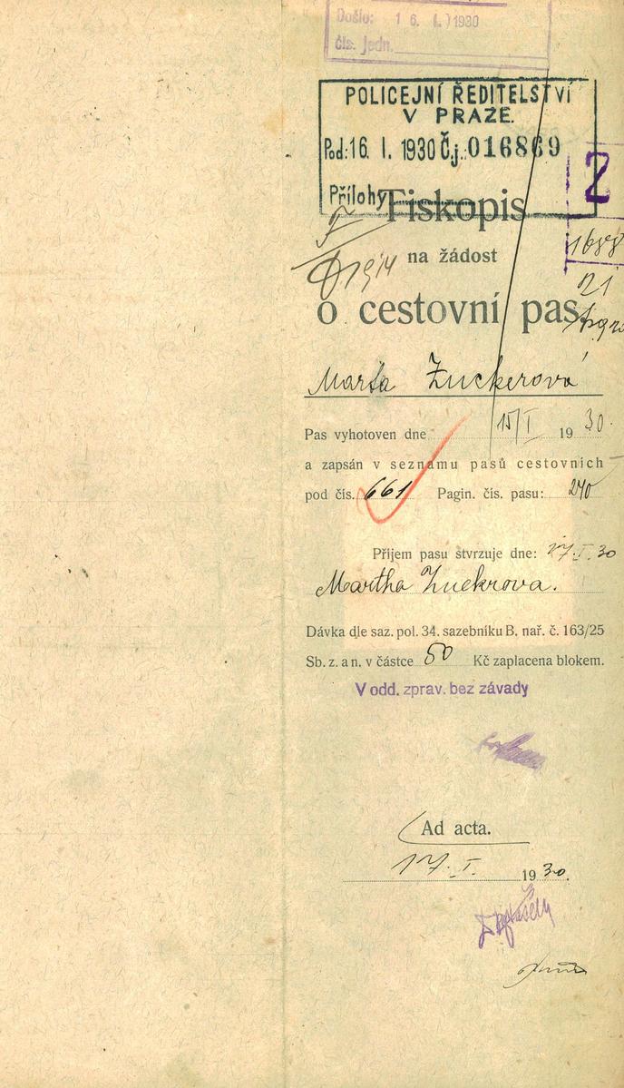 Zuckerová Marta: Žádost o vydání cestovního pasu