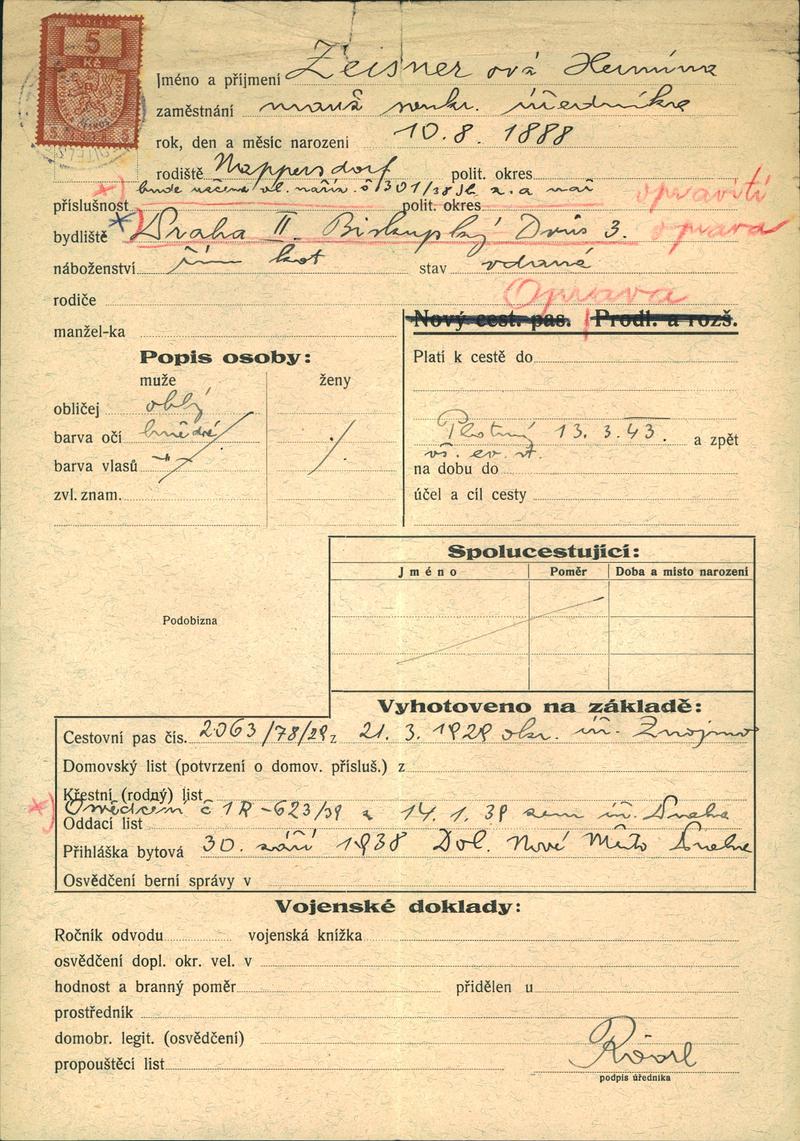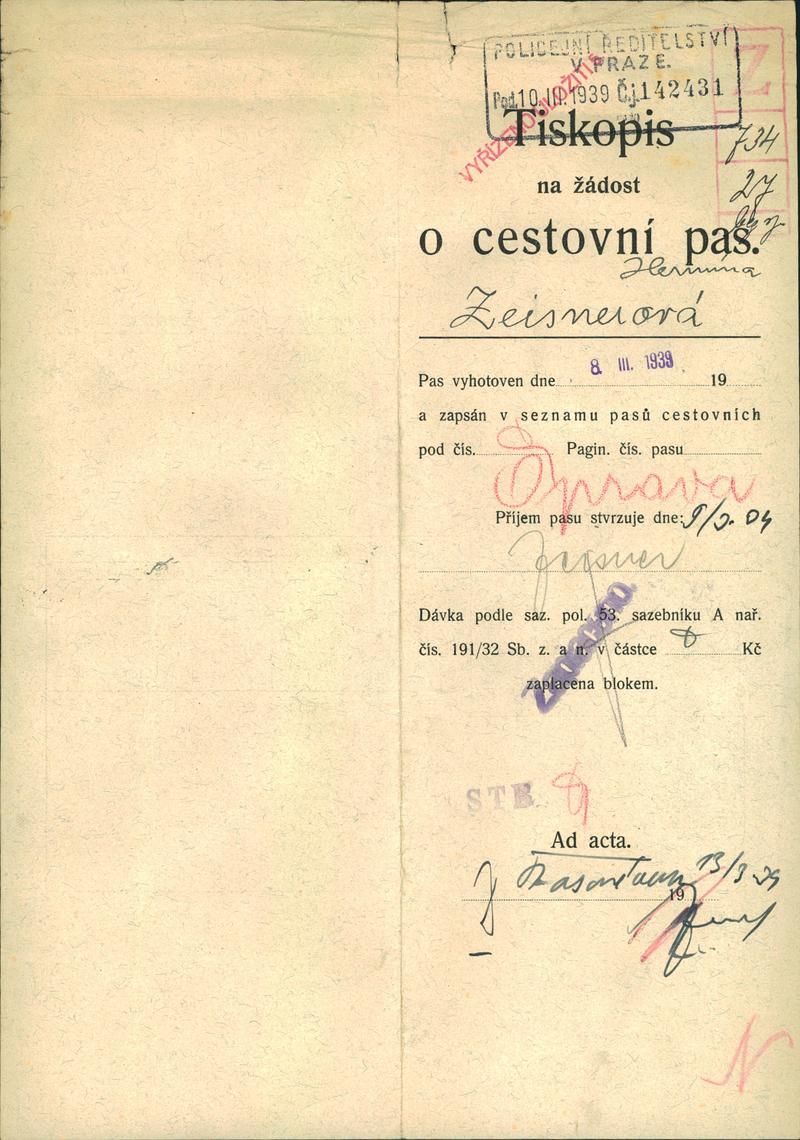 Zeisnerová Hermína: Žádost o změnu v cestovním pasu