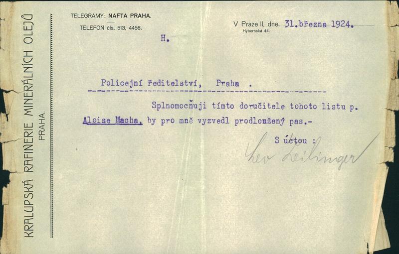 Zeilinger Leo: Plná moc k vyzvednutí cestovního pasu