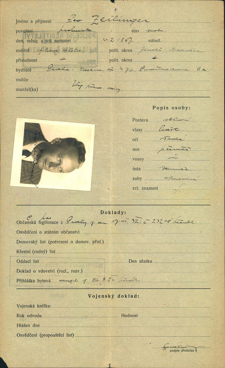 Zeilinger Leo: Žádost o vydání občanské legitimace
