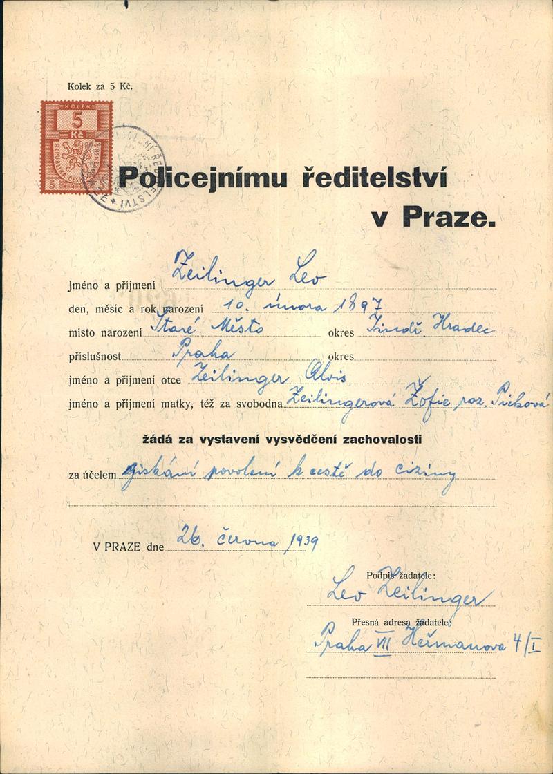 Zeilinger Leo: Žádost o vystavení vysvědčení zachovalosti