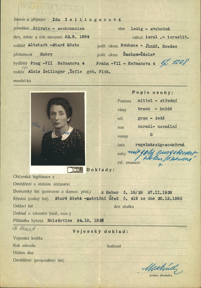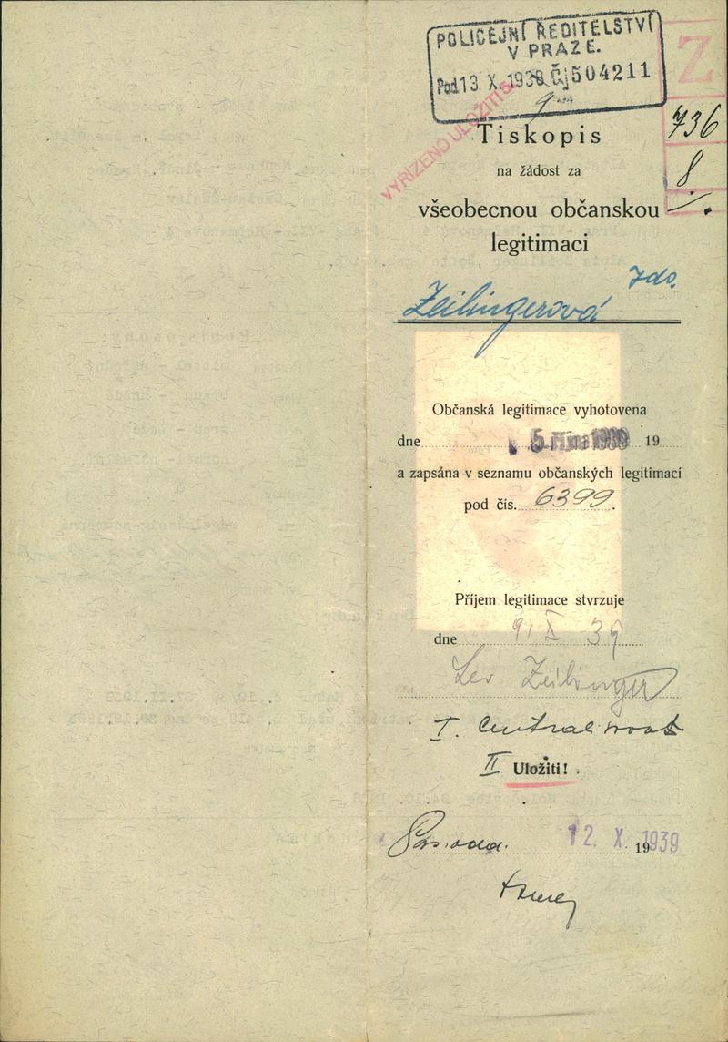 Zeilingerová Ida: Žádost o vydání občanské legitimace