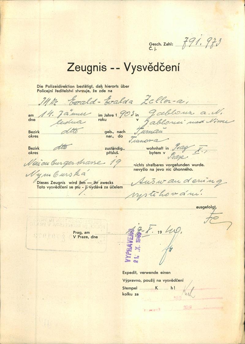 Zeller Ewald: Vysvědčení zachovalosti