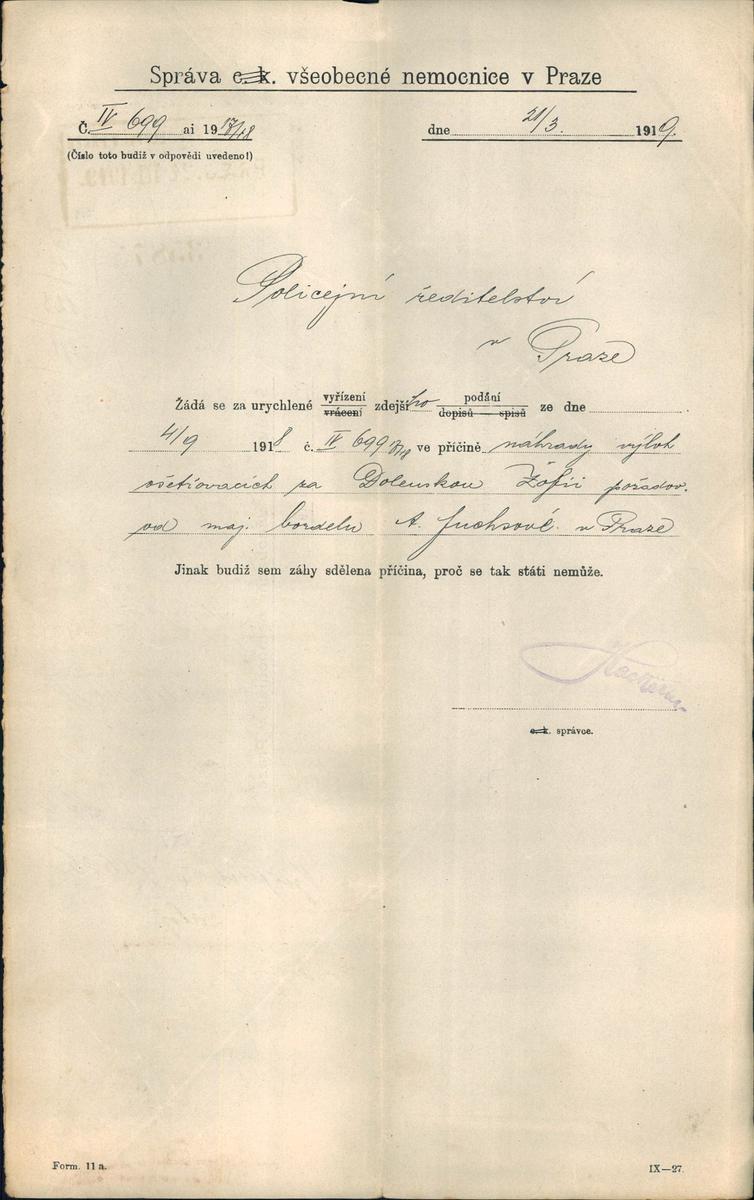 Želinová Žofie: Žádost o úhradu léčebných výloh