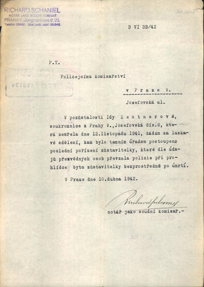 Zentnerová Ida: Šetření ve věci pozůstalosti