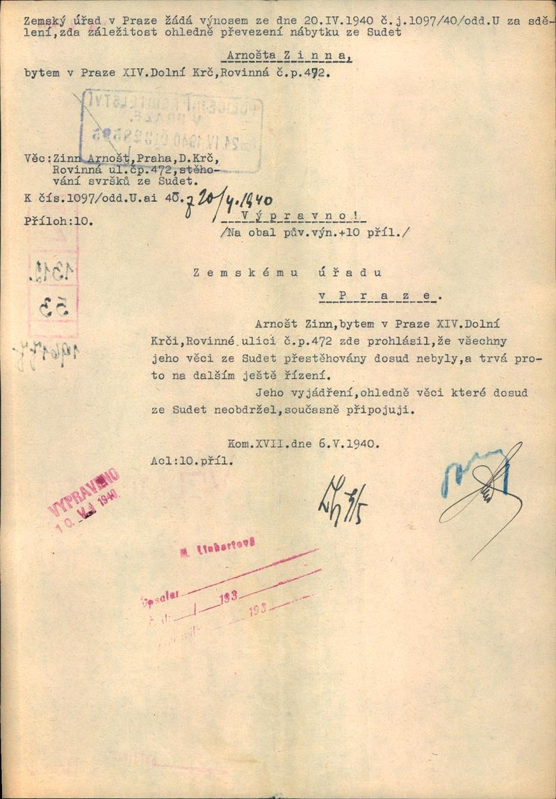 Zinn Arnošt: Šetření ve věci stěhování svršků ze Sudet