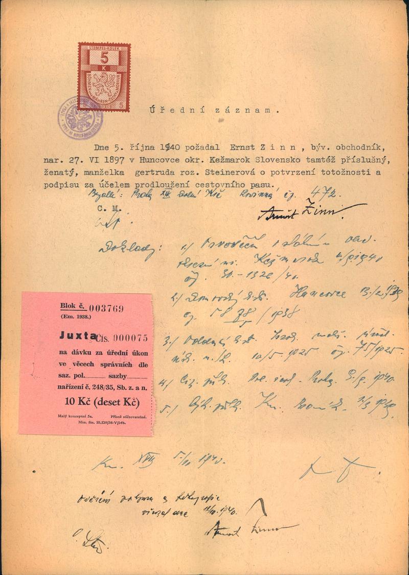 Zinn Arnošt: Žádost o potvrzení totožnosti a podpisu