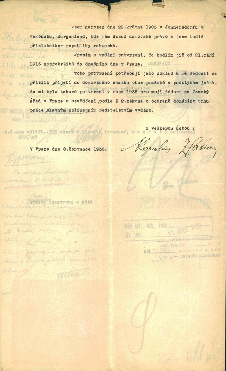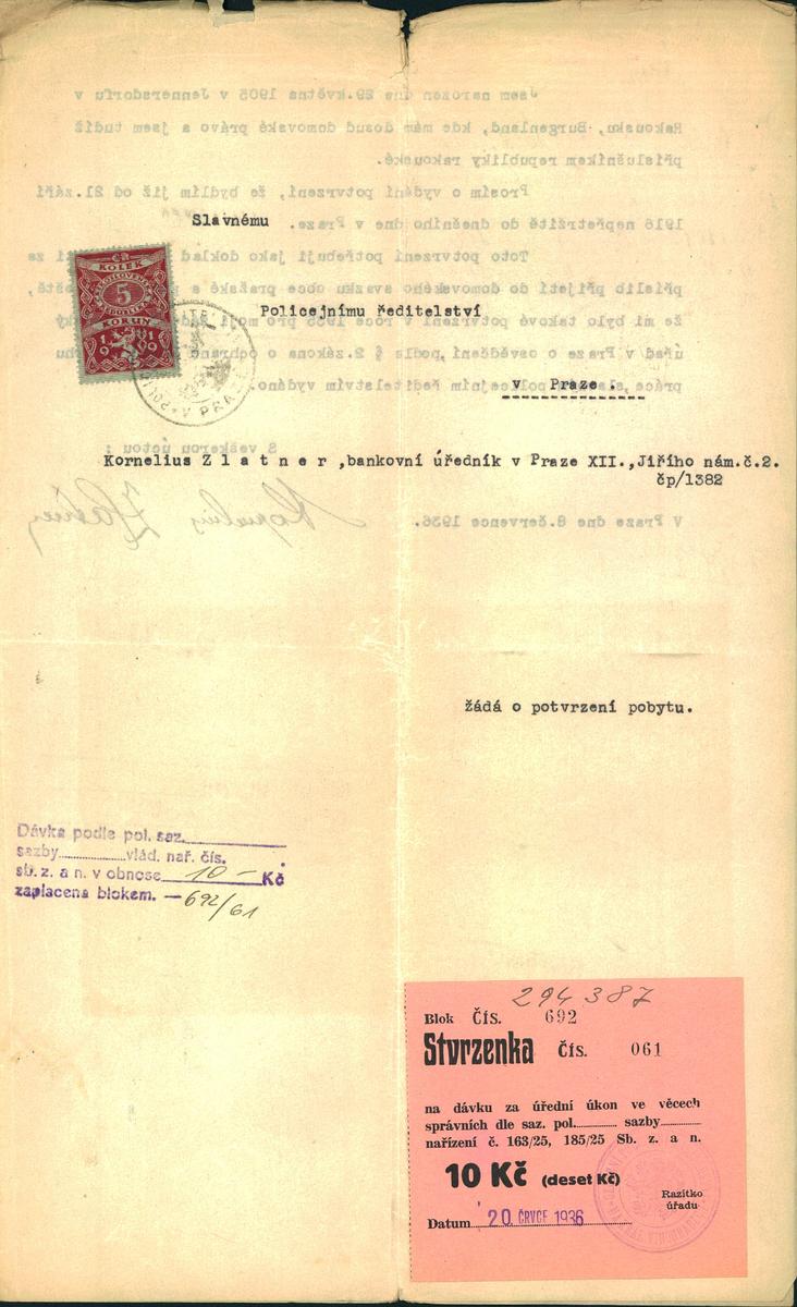 Národní archiv Praha > Policejní ředitelství v Praze > 1941-1950 > Z > Zlatner Kornelius