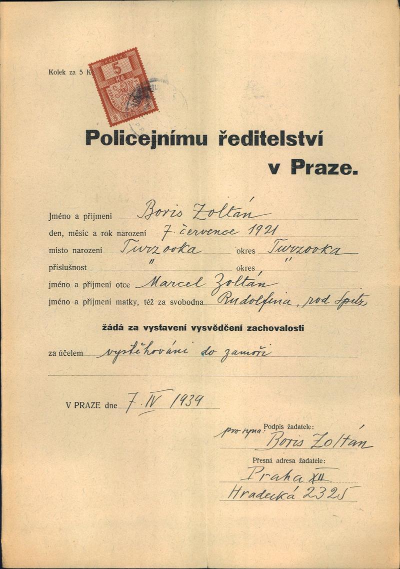 Zoltán Boris: Žádost o vystavení vysvědčení zachovalosti