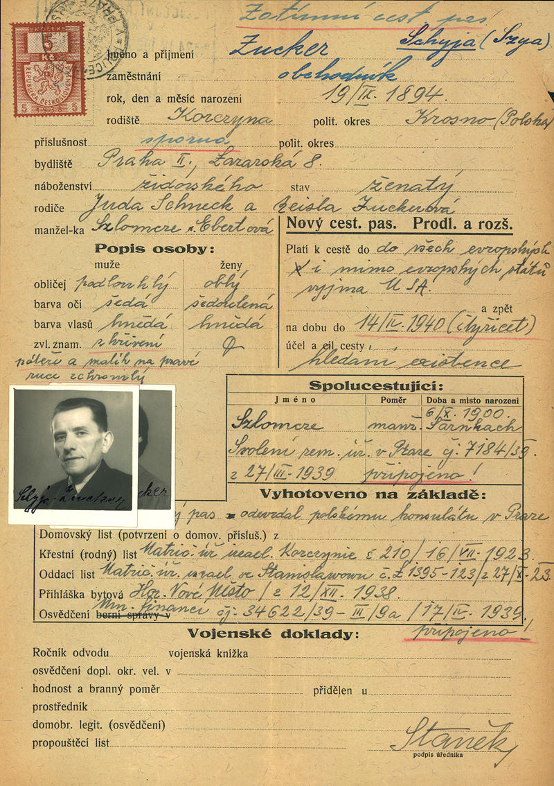 Zucker Schyja: Žádost o vydání prozatímního cestovního pasu