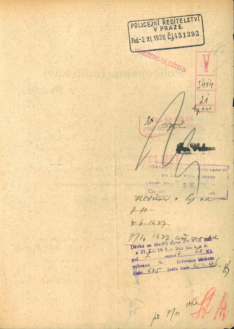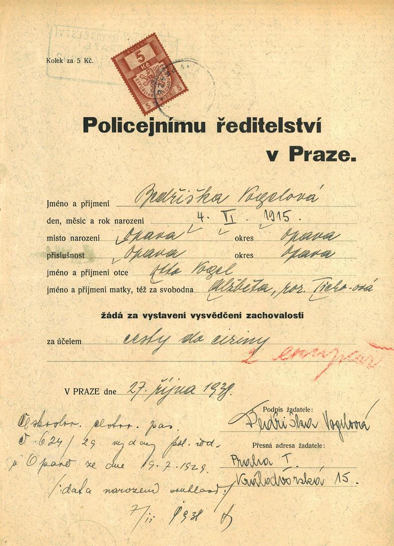 Zuckerová Fritzi: Žádost o vystavení vysvědčení zachovalosti