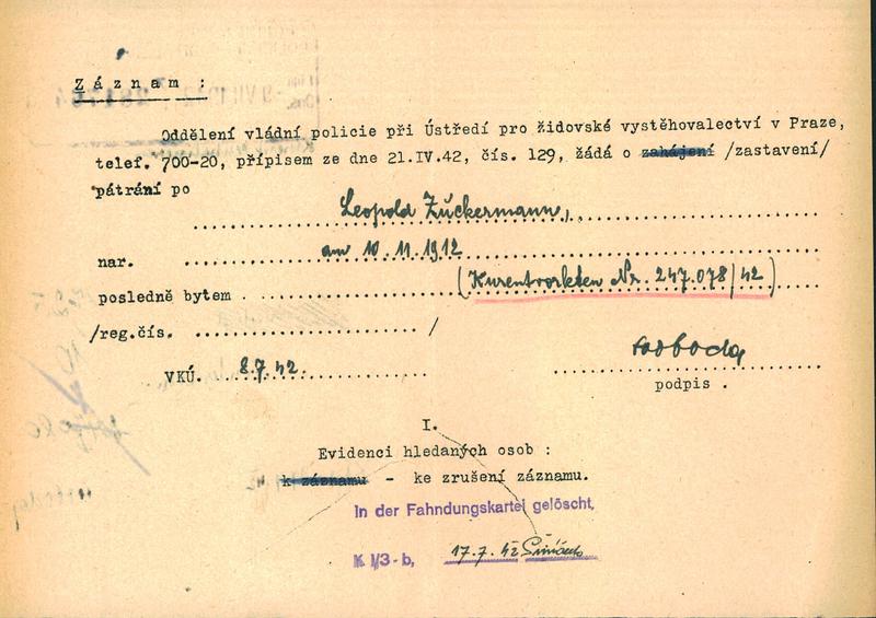 Zuckermann Leopold: Žádost o zastavení pátrání