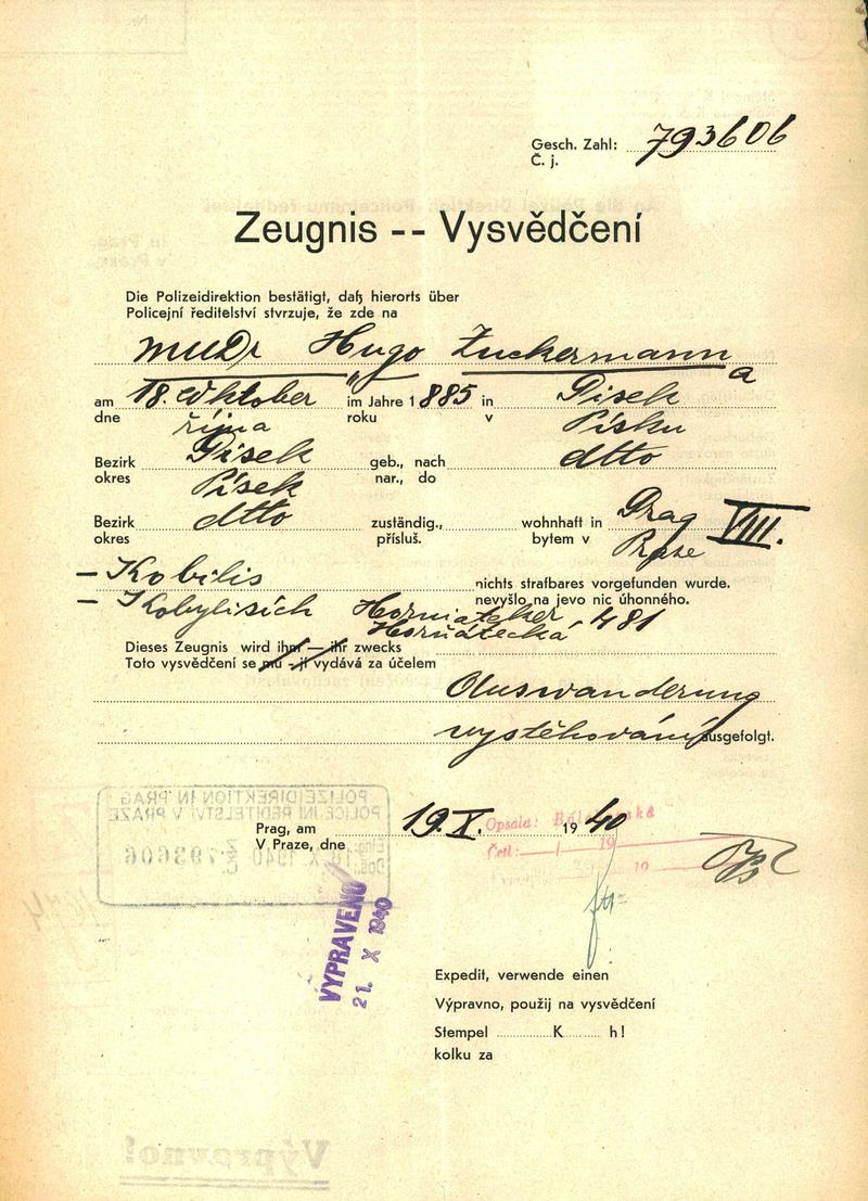 Zuckermann Hugo: Vysvědčení zachovalosti