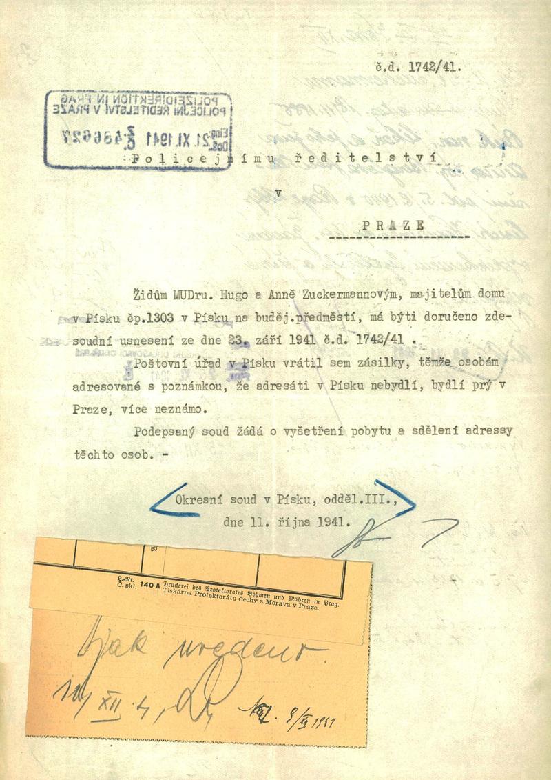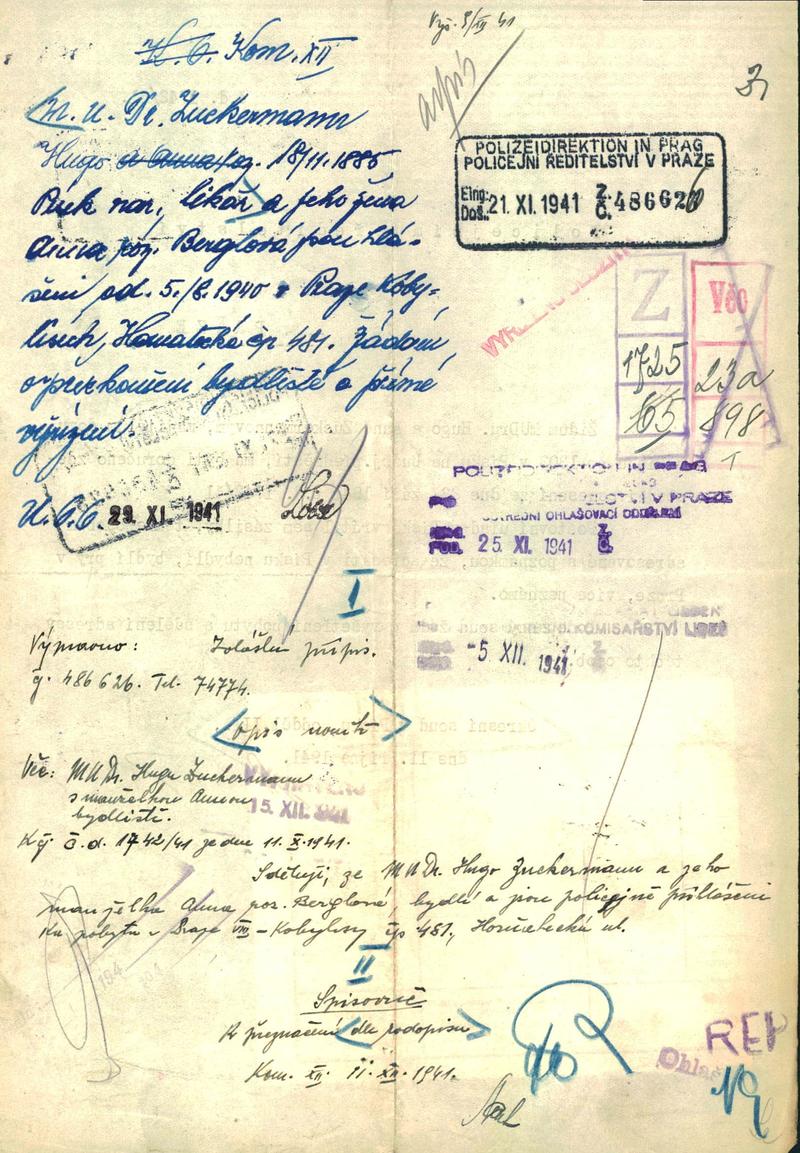 Zuckermann Hugo: Šetření o pobytu