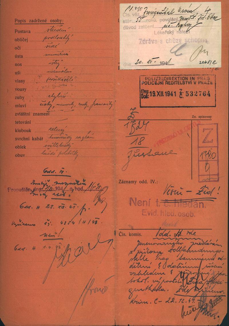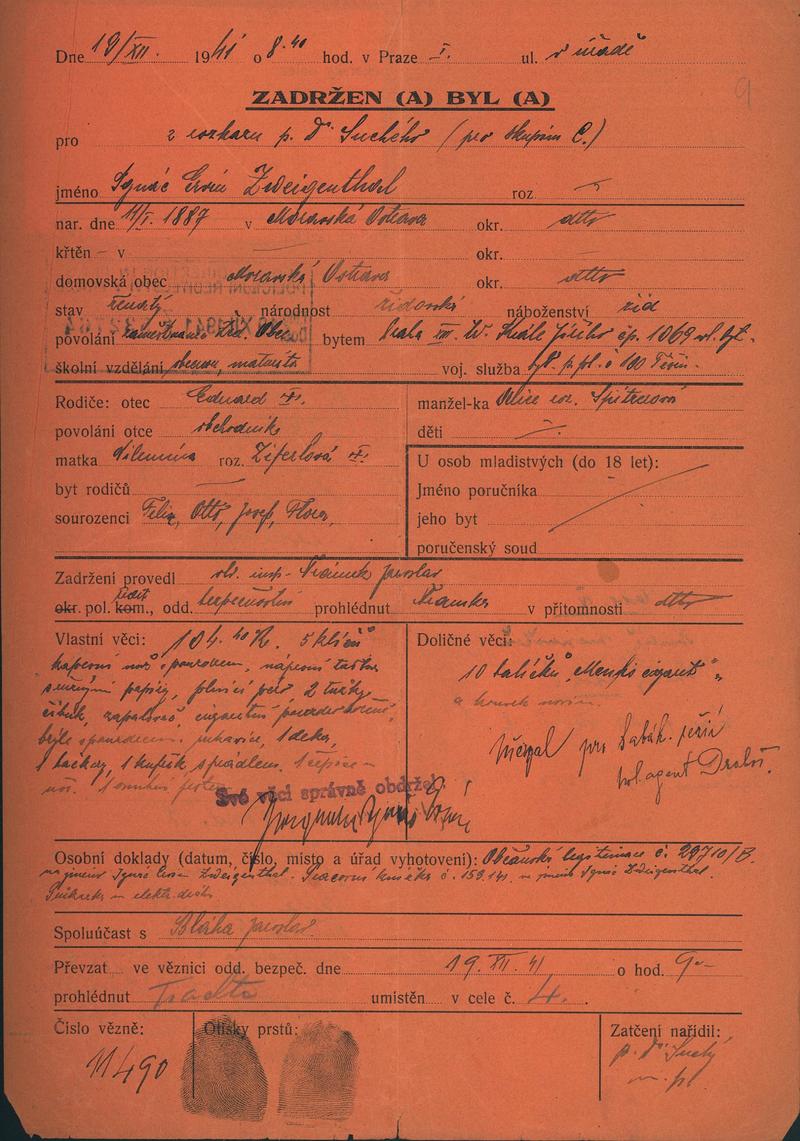Zweigenthal Hynek Ervín: Protokol o zadržení