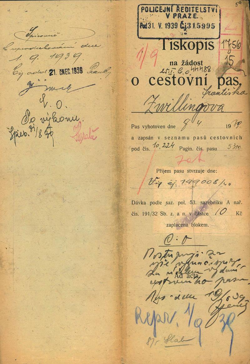 Zwillingová Františka: Žádost o vydání prozatímního cestovního pasu