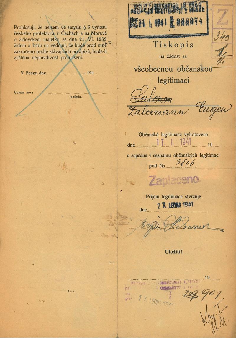 Zalczmann Evžen: Žádost o vydání občanské legitimace