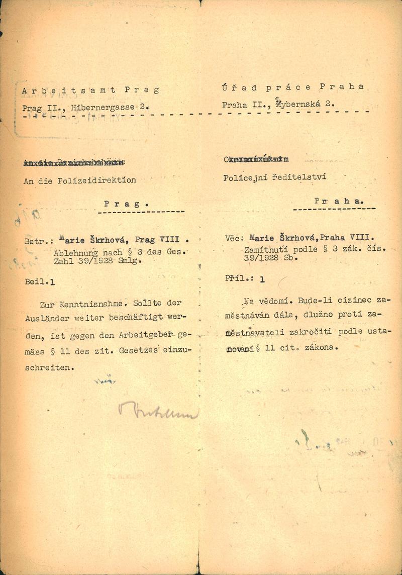Zelmanoviczová Josefina: Vyjádření k žádosti o povolení zaměstnávání cizího státního příslušníka