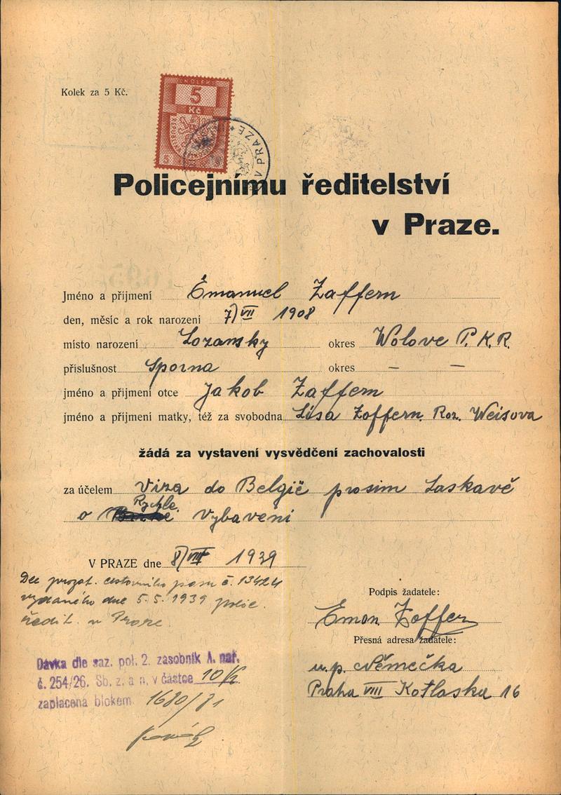 Zaffern Emanuel: Žádost o vystavení vysvědčení zachovalosti