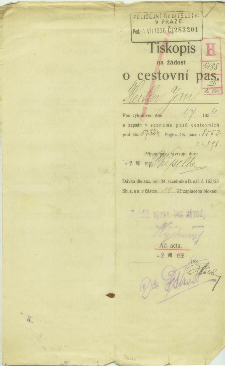 Národní archiv Praha > Policejní ředitelství v Praze > 1931-1940 > H > Heitler Hanuš