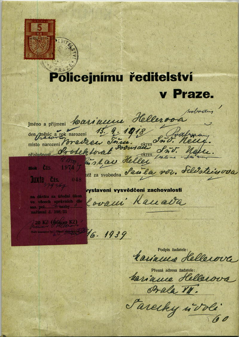 Národní archiv Praha > Policejní ředitelství v Praze > 1931-1940 > H > Hellerová Mariana