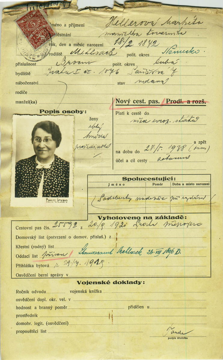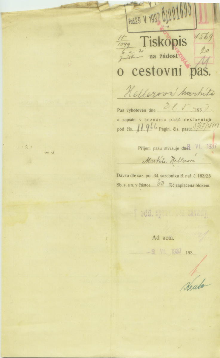 Hellerová Markéta: Žádost o vydání cestovního pasu