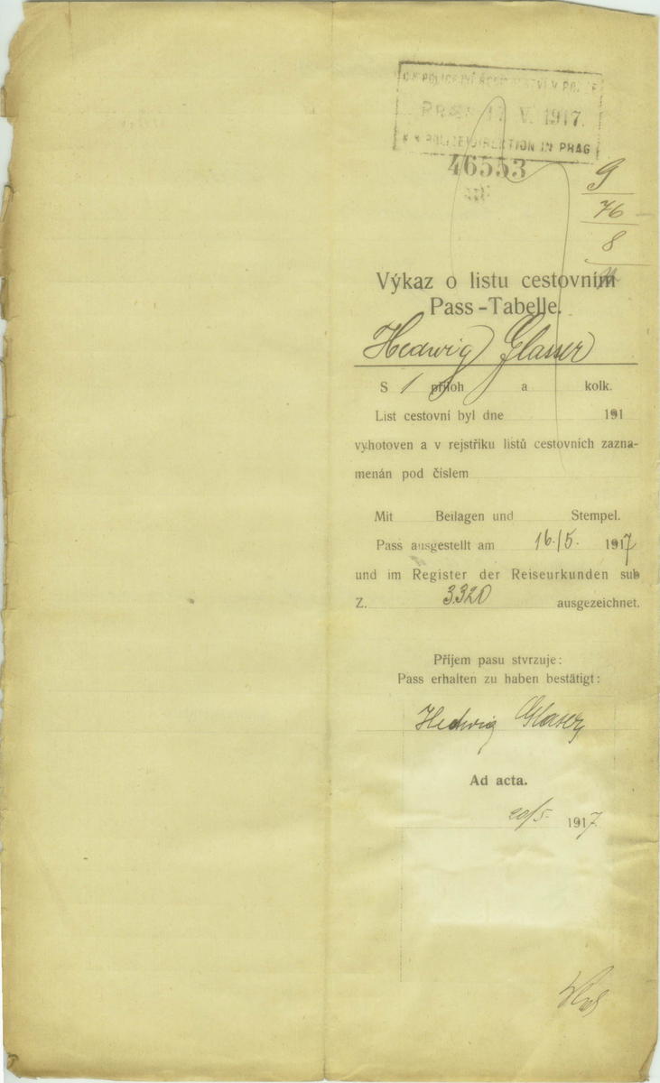 Pro publikaci je nutné kontaktovat Národní archiv v Praze, kde je uložen originál dokumentu. Dokument byl digitalizován Institutem Terezínské iniciativy v rámci projektu Terezínské album.