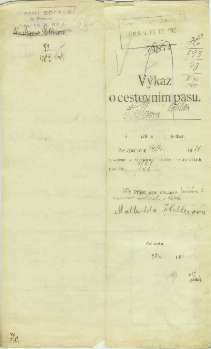 Národní archiv Praha > Policejní ředitelství v Praze > 1931-1940 > H > Hellerová Matylda
