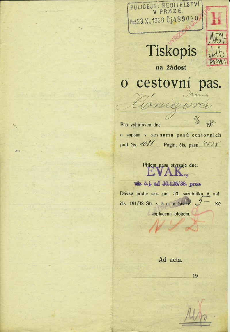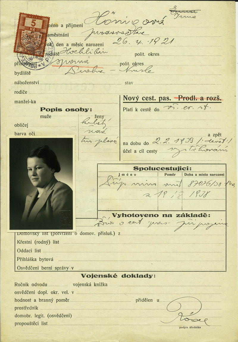Hönigová Irma: Žádost o vydání cestovního pasu