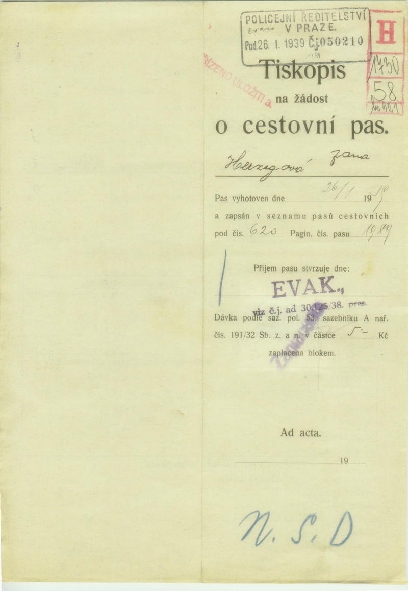 Herzigová Jana: Žádost o vydání cestovního pasu