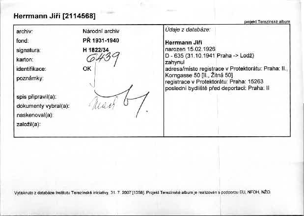 Národní archiv Praha > Policejní ředitelství v Praze > 1931-1940 > H > Herrmann Jiří