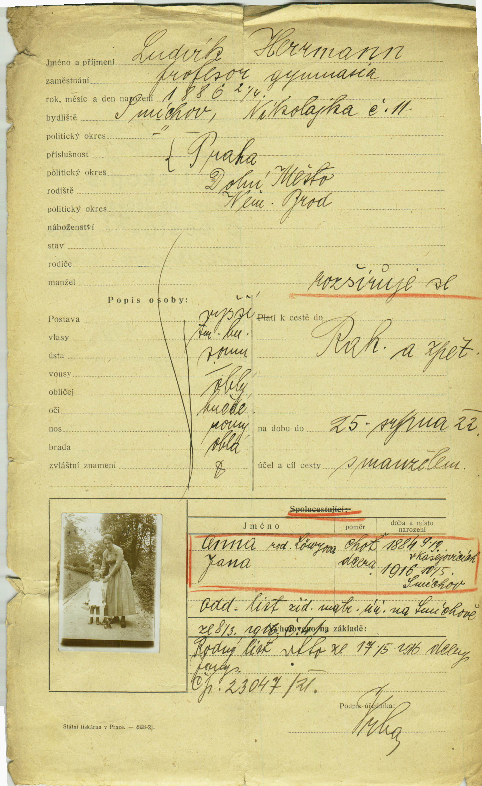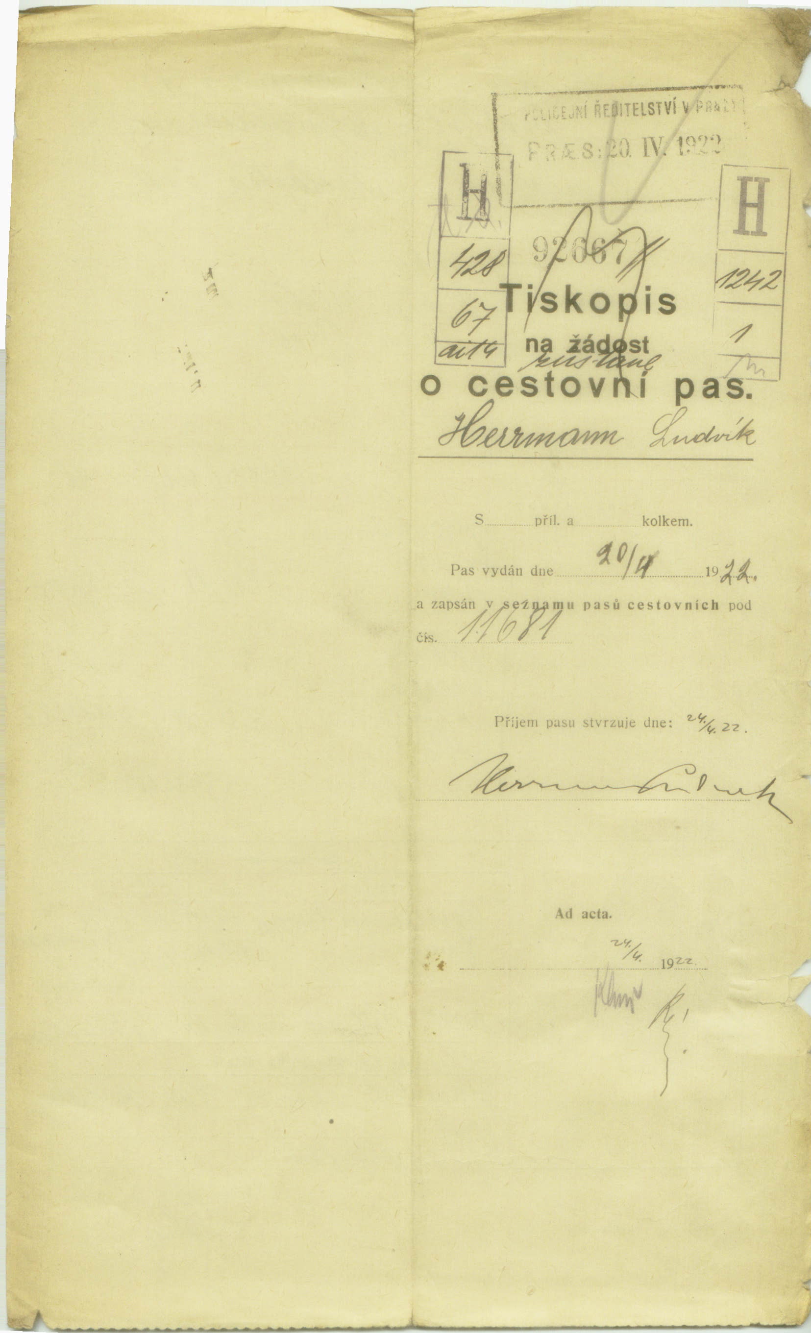 Herrmann Ludvík: Žádost o rozšíření cestovního pasu