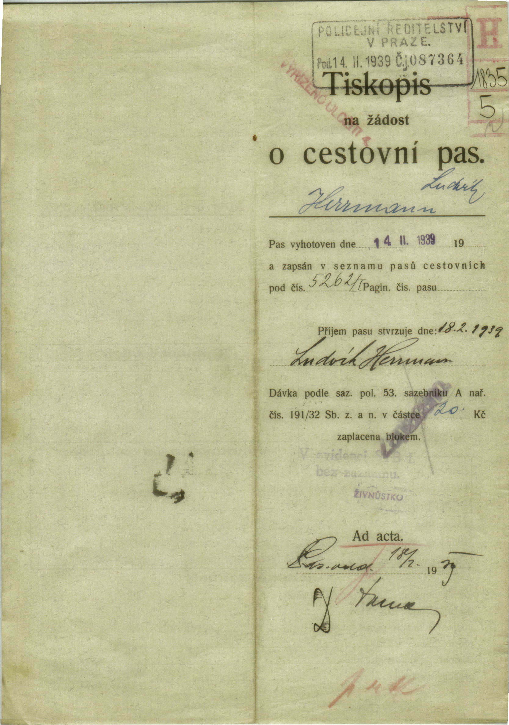 Herrmann Ludvík: Žádost o rozšíření cestovního pasu