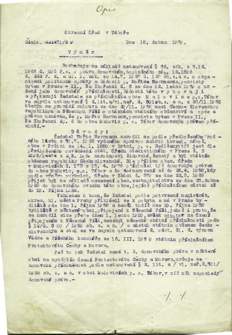 Národní archiv Praha > Policejní ředitelství v Praze > 1931-1940 > H > Hermann Mořic