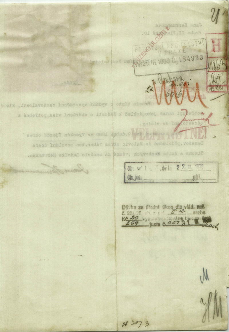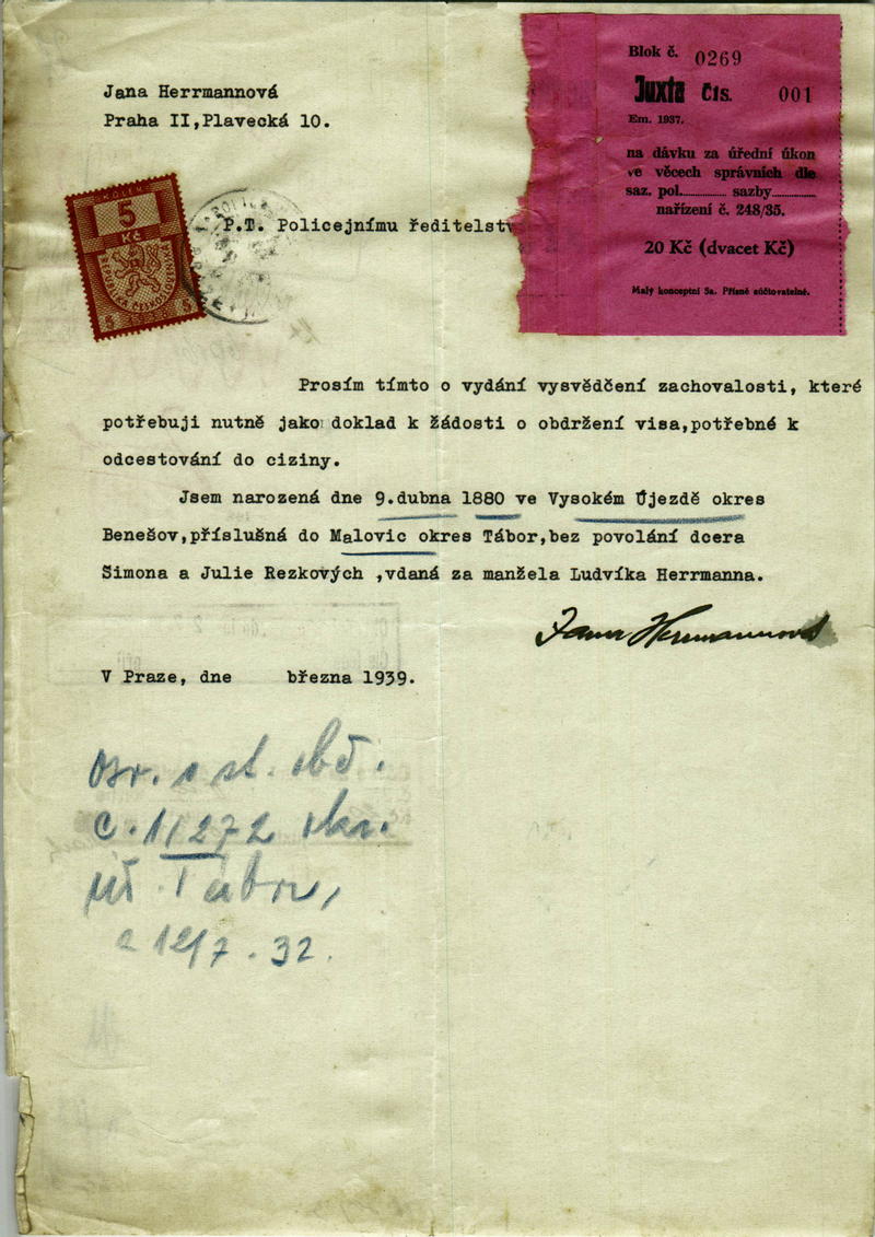 Národní archiv Praha > Policejní ředitelství v Praze > 1931-1940 > H > Herrmannová Jana