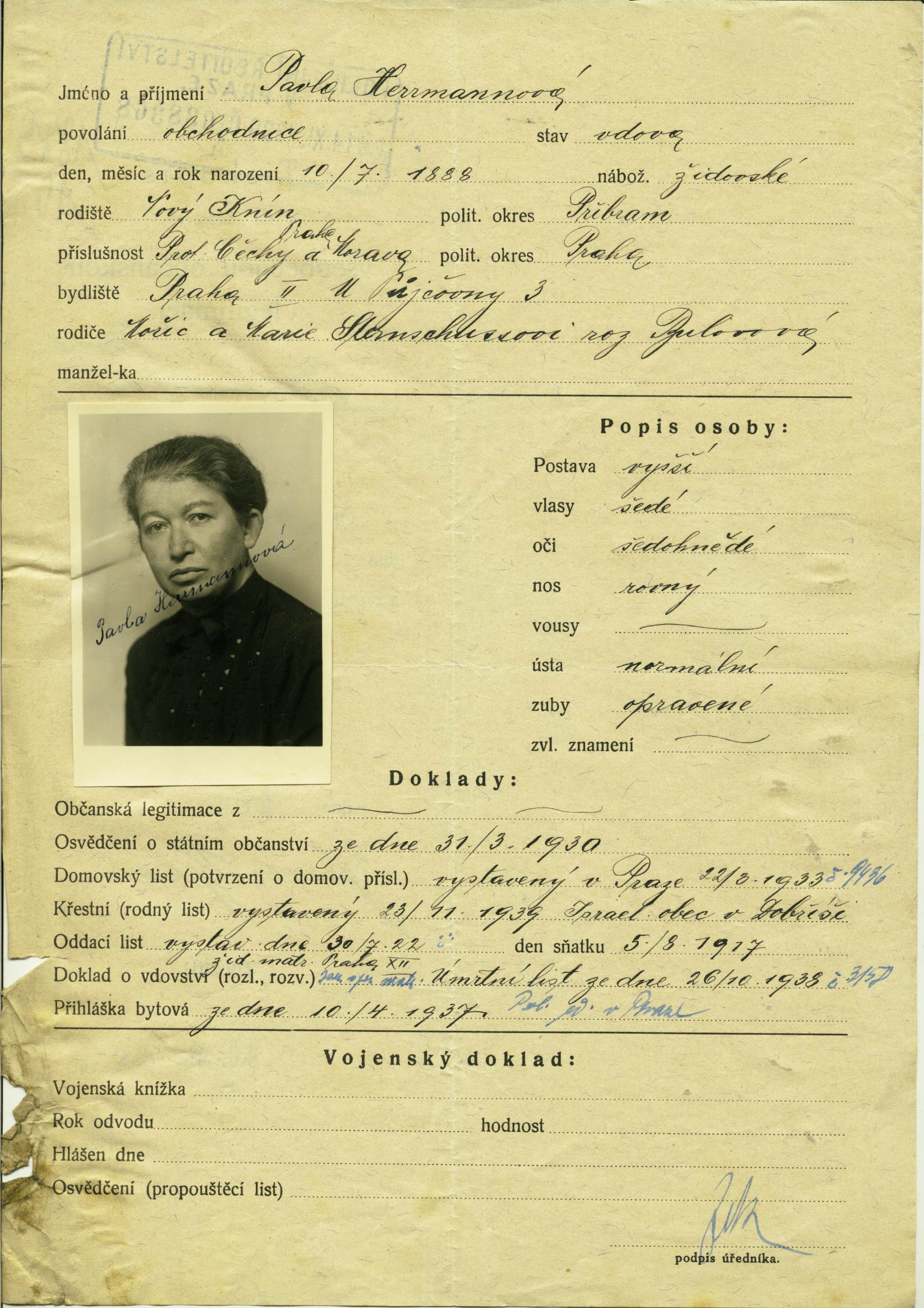 Herrmannová Pavla: Žádost o vydání občanské legitimace